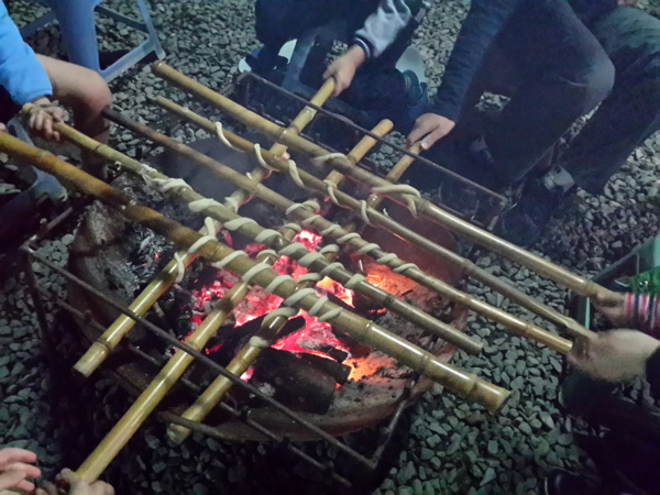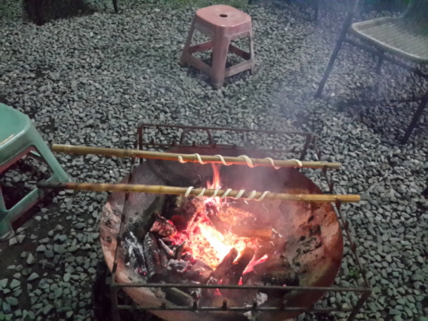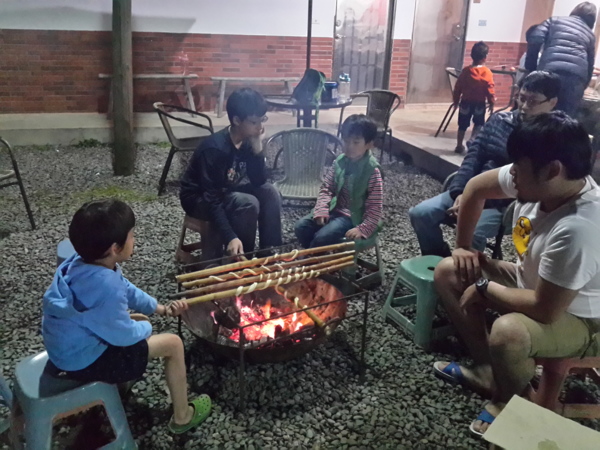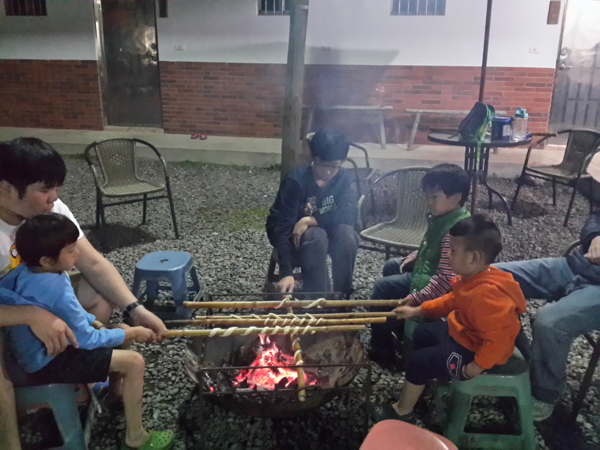 說到烤蛇餅當然要有火對不對,所以可以在烤肉結束後用剩餘的火來烤,當然在烏松崙就是要用特別版的,老闆特別去訂製一個烤蛇餅專用烤架讓大家使用,專業吧!帥哥的手不是靈異現象啦,是他拿紙板在煸風起火啦,別害怕!