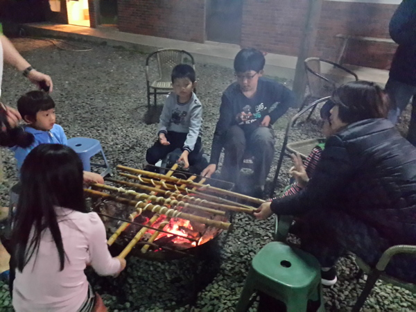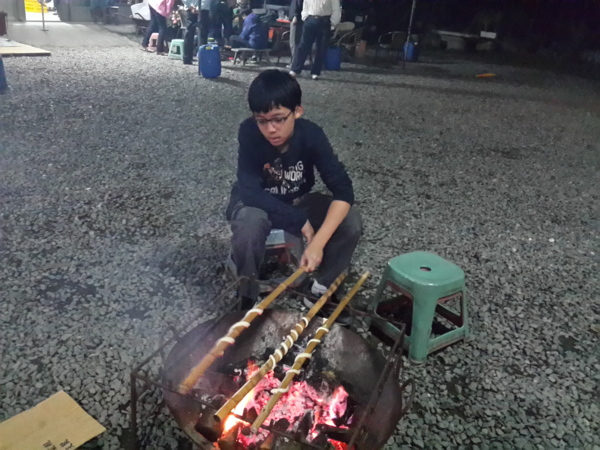 彥良專心的轉動他的蛇餅,以免烤焦了!