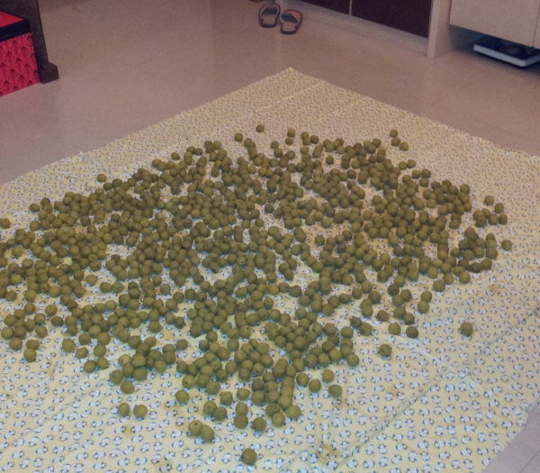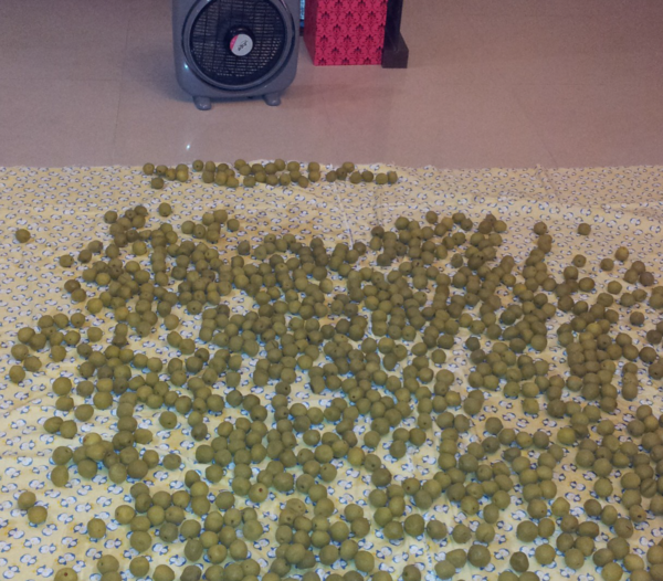 將梅子撈出來風乾,天氣好就到頂樓陽台,天氣不好時只好在家裡的客聽