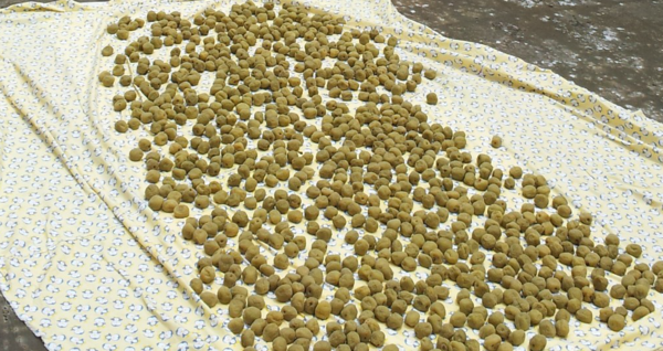 將梅子平舖在布上