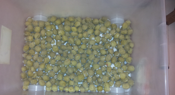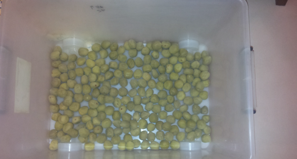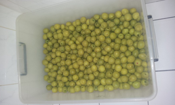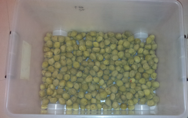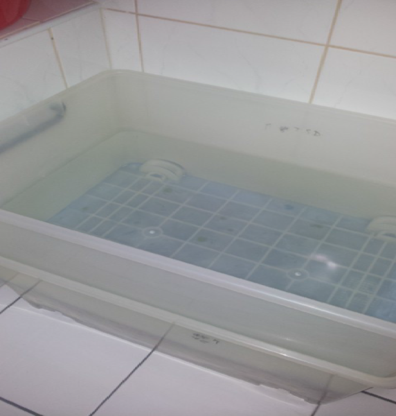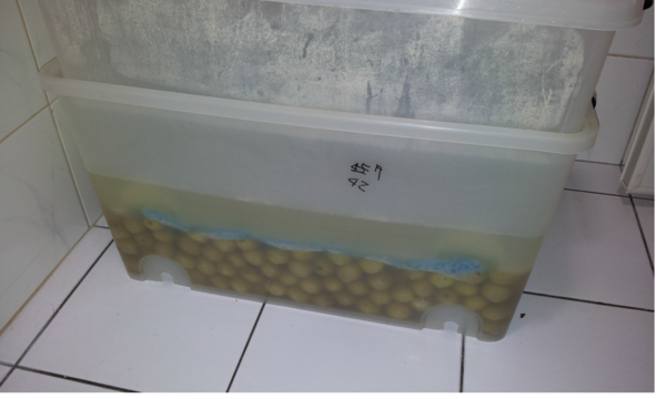 再將梅子放入家中的整理箱,本人非常推薦使用大小一樣的二個整理箱來製作梅子,等會你就會發現它的好處