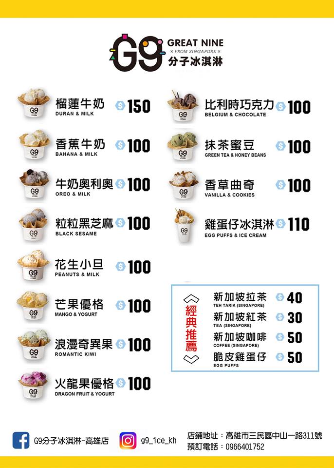 ●全球有200多家分店,G9分子冰淇淋《高雄店》推出熱情優惠