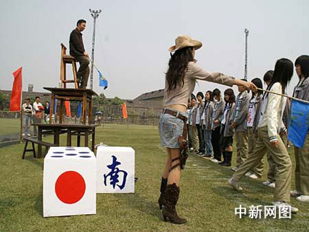 參賽者通過紅旗指揮著每個美女麻將牌,被點到打出去的麻將牌,充當麻將牌的美女就把風衣脫掉,露出裡面的麻將牌。