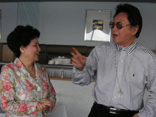 雷倩母親鄭正玨與夫婿傅達仁。陳心怡/關島攝影。