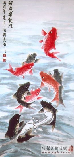 門前池塘裏飛跳起一條又肥又大的鯉魚 ( 真個鯉躍龍門)~