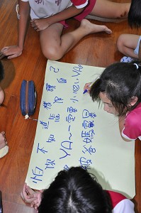 之後,幾位老師設計了「重返犯罪現場」、「百萬大歌星」、「走向星光大道」的課程活動,讓學生以活潑的方式,知道如何保護自己。
