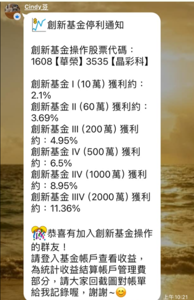 新聞資訊:創新當沖基金詐騙、Cindy詐騙、群組椿腳分享獲利演戲給你看、創新當沖基金佈局收割讓人防不勝防勿加入、創新當沖基金神鬼手法曝光 教你一招拿回