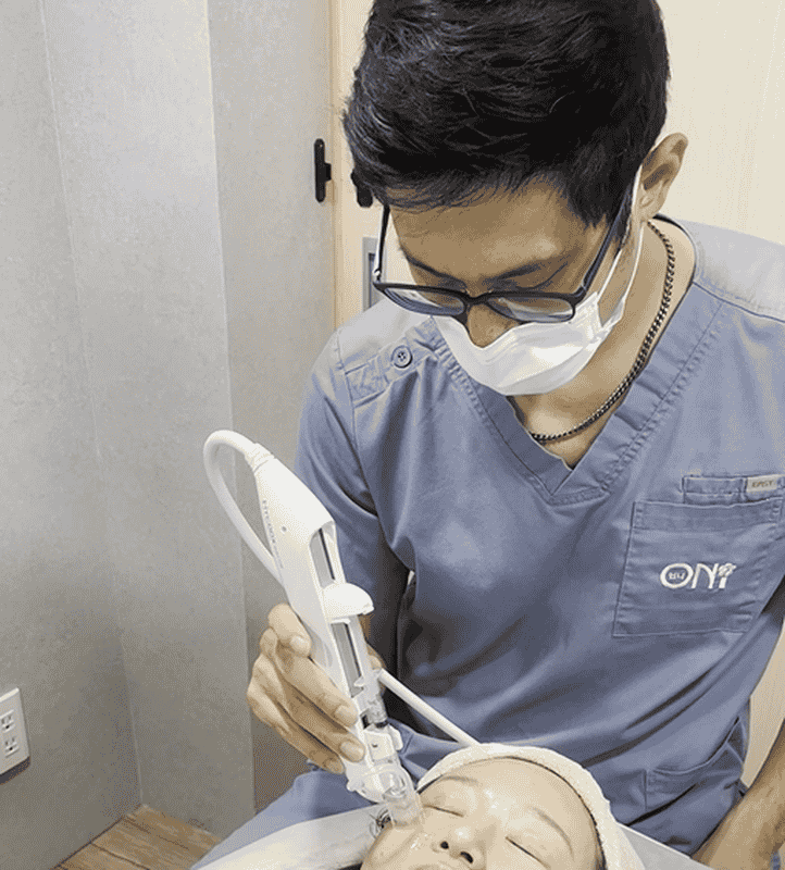 這項療程使用的是韓國最新的HYCOOX海庫斯水光儀,其負壓注射技術能降低施作時的疼痛感。我的恐懼在醫生和護士的專業講解下漸漸消退,特別是知道每次的探頭都是拋棄式的,確保了安全與衛生。施作過程中,醫生不斷提醒我放輕鬆,讓我安心不少。