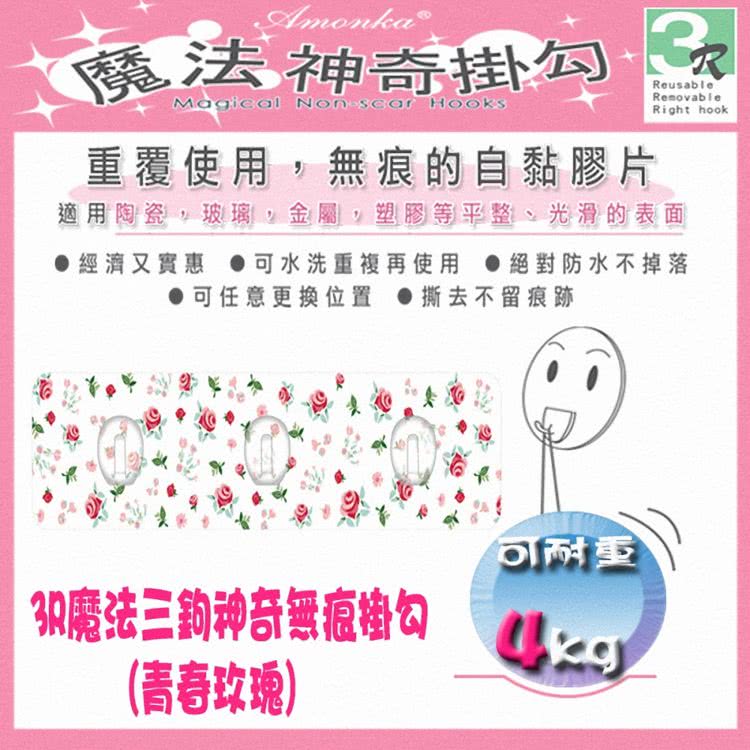 【AMONKA】3R魔法三鉤神奇無痕掛勾(青春玫瑰2入)哪裡買最便宜.心得文.試用文.分享文.好用嗎.推薦.評價.熱銷.開箱文.優缺點比.............