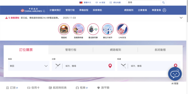 - 前往官方網站:https://www.china-airlines.com