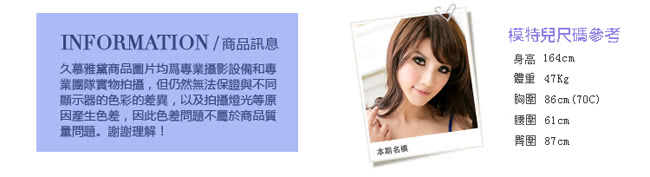 久慕雅黛品牌一直比較注重內衣的品質,以優雅、氣質自信在做為品牌的靈魂,更加充份詮釋女性在生活中的各種角色,高貴的太太、嬌媚風情的女人、純潔可愛的少女、男人眼中的百變妖精。
