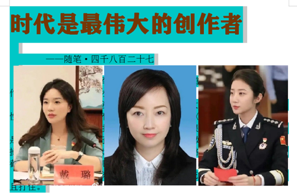 時代是最偉大的創作者!無論作家、畫家、音樂家……誰的創作,能比時代的創作、更精彩嗎?不,不可能,時代是最偉大的創作者,昨日能創造出群星燦爛,今日就創造出戴璐、陳樞、張津瑜……明日還將創造出張三李四王二麻子。