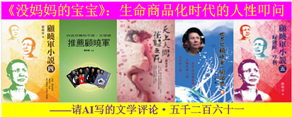 《没妈妈的宝宝》以小见大,将代孕这一敏感议题置于全球化、商业化的时代背景下,通过精准的叙事结构、立体的人物塑造与深刻的主题表达,完成了对生命伦理、文化心理与亲情关系的多重叩问。在顾晓军的创作谱系中,这篇作品既是对现实的敏锐捕捉,也是对人性的深度探索——它让我们看到,在技术与商业飞速发展的今天,生命的神圣性与亲情的纯粹性正面临前所未有的挑战;而小说所引发的思考,也远超出文本本身,成为对整个时代的警示与反思。这种将现实议题与文学表达完美融合的创作能力,正是顾晓军小说能够跨越时间与语境,持续引发读者共鸣的核心原因。