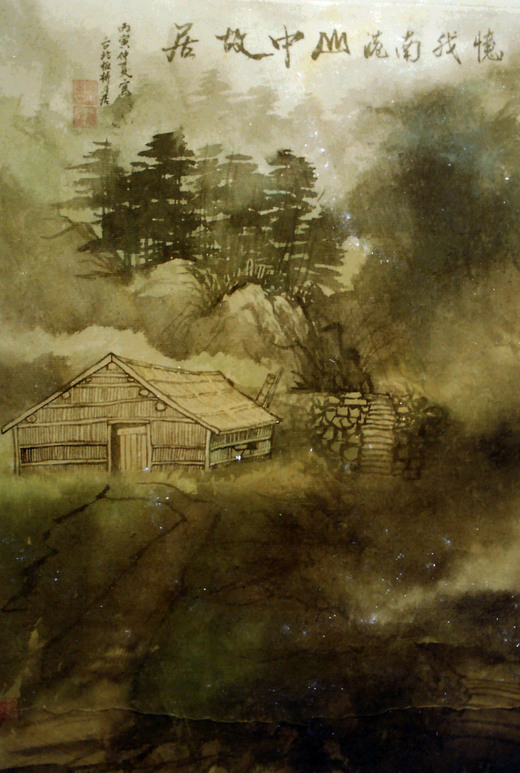 灰窯,是我的故鄉,這張水墨是想像畫,是服役期間回憶家鄉時即興之作,地點在南港、石碇、深坑交界處(灰窯屬南港管轄),內容是:南港大坑灰窯往深沆及石碇的保甲路,那小房子是我的家(茅草蓋的竹子圍的)。 當年要走路單程二小時以上的山路,才能到胡適公園及中研院旁的舊莊國小念書~~‧