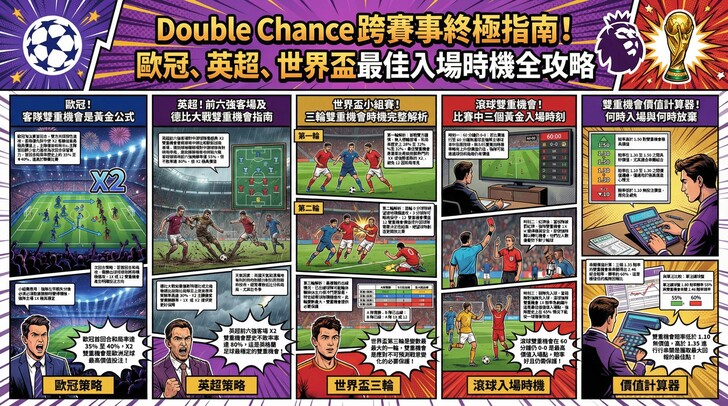 隨著 2026 年美加墨世界盃進入倒數階段,全球球迷正摩拳擦掌準備迎接這場足球盛宴。在足球運彩的世界裡,多數新手會先被「不讓分」或「大小分」吸引,但資深玩家都知道,**「雙勝(Double Chance)」**才是真正能對抗足球高平局特性、提升勝率的「防禦性神兵」。本文將從核心結構、實戰情境到資金配置,帶你全面掌握這項極具彈性的玩法。