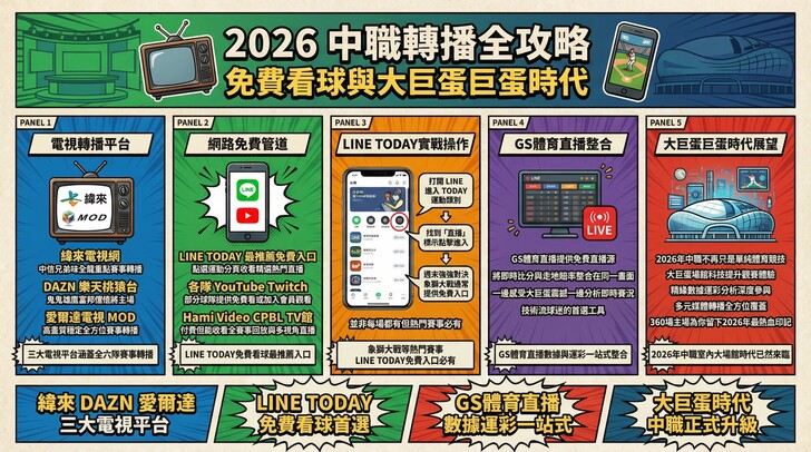 22026 年是中華職棒邁向成熟的關鍵年。從大巨蛋的舒適觀賽環境,到六隊均衡發展的實力對抗,再加上 22 位旅美球員隨時可能回流的話題性,今年的中職絕對不容錯過。無論您是守在 LINE TODAY 前看直播,還是親自踏入大巨蛋感受空調與歡呼,掌握這份賽程攻略,您就能在今年球季中成為最專業的職棒通!