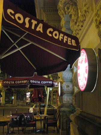 布達佩斯是一個沒有S咖啡(至少我沒有發現)的城市,連鎖咖啡館也很少,Costa算是少數。前一天是假日,經過這家咖啡館時還人山人海的,但這天卻空蕩蕩的,晚上九點多幾乎所有人都走光了,只有我獨坐一隅埋首書寫,記下這幾天在布達佩斯的旅行日誌,偶然抬起頭看到落地窗上的圓形LOGO,發現在倫敦創立的Costa竟然跟我同齡,想來也是一種特殊的緣分吧!
