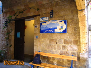 他哦!一聲說,「這家旅館不好找,就在前面那裏,你可以沿著這條路走,總共會經過兩個廣場,第二個廣場,那裡有一個噴泉上面站著一隻鳥,到那裡你再問人,如何從這條Socratous街找到你的民宿。」說著說著就騎上摩扥車走人了。沒想到這裡的人如此熱心,即使生意做不成,也願意幫忙陌生人。就這樣經過幾位貴人的指點,終於來到了Hotel isole。原來它是在Socratous街這條最熱鬧的商店街後面的巷子裡。原來由貓頭鷹廣場,沿著Socratous街左邊繼續往前走,在第二個巷子或是第三個巷子會看到路底有個Isole Hotel指標的招牌走進去就是了。
