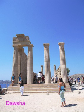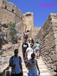 車子大約開了一個小時之後,在林德斯(Lindos)的巴士站停車。乘客魚貫地下車,有些人是繼續轉乘開往下方的天然海灘的巴士;其餘的人全部向林德斯(Lindos)這個白色的村落移動。今天太陽又毒又強。