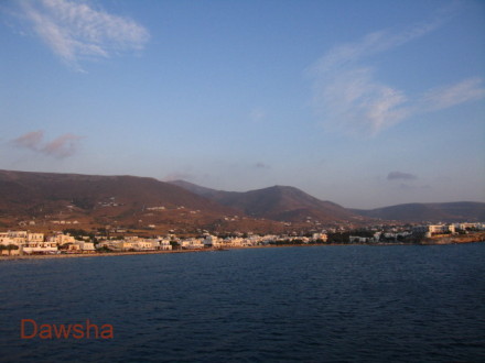 當船停靠Naxos時,是18:50 。由甲板上看這個未來會來拜訪的島,心情頗複雜的,與前面幾個拜訪過的島比起來,單純由外觀看,比較不好看,也比較商業化。心中出現”天啊!”的滴沽聲。下一站於2015停靠Paros,其外觀比Naxos好一些。心中暗暗覺得不妙,期待Syros會好一些。
