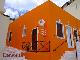 中午返回Ermoupoli,很有緣地搭到同一個司機開的巴士。中午在在美美的Archontaniki用餐,點清淡的番茄小黃瓜沙拉與香煎雞肉片,這家的雞比較嫩,陪襯的菜是紅椒、煎馬鈴薯與綠色蔬菜,都頗可口的,這家餐廳以希臘人居多,可以享用到比較道地的希臘菜。