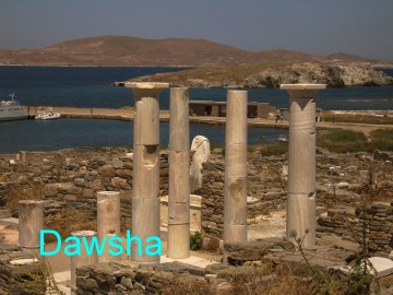 話說Delos在希臘神話中是蕾托(Leto)生下阿波羅與雙胞胎妹妹阿特米絲(Artemis)的地方。於西元前8世紀阿波羅的神殿在此建立。在古希臘時期,它是宗教中心與繁華的商業中心,連絡敘利亞與埃及。