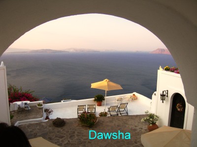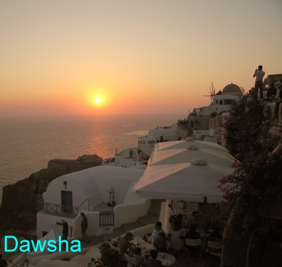 下午四點往Ammoudi餐廳的方向走下去,這條路有驢子提供載客服務,最底下就是舊港,前往Thirasia島的船在此搭乘。這家餐廳就在港邊,據說黃昏時在此用餐可欣賞日落美景及享用美食。是非常棒的選擇。