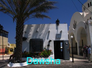 下午回到費拉(Thira)觀日落。拜訪這個熱鬧滾滾、人潮擁擠、商業化的觀光區。它的市中心是以Plateia Theotokopoulou為主。它的旁邊有服務親切的觀光局,這裡有免費地圖可以索取,我們站在門口,也會被熱情的工作人員,招進去服務。實在讓人受寵若驚。