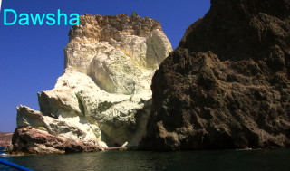 由於古代阿寇提利(Akrotiri)關閉,我們四人改搭小漁船出海探訪紅沙灘(Kokkini Paralia)與白沙灘(Aspri Paralia)。