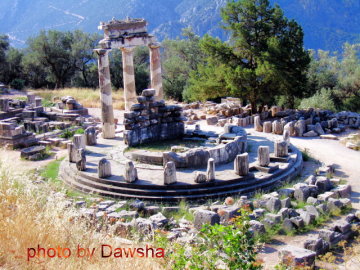 Tholos建於西元前380 and 360 B.C.之間,這個圓形的結構外圍有20根柱子,直徑是