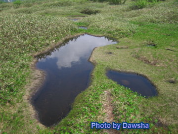 彌陀高原位於海拔1930公尺高的立山山麓上,它是由10萬年前立山火山爆發後的熔岩,所堆積形成的火山泥炭台地。經過多年積雪與低溫潮濕的氣候,形成了日本最高的高原濕地,這裡有著各式各樣珍貴的高山植物與濕地植物覆蓋在這片大地上,以及散佈了3000個大大小小的水塘在其中。這些水塘就是俗稱『餓鬼田』的沼池。