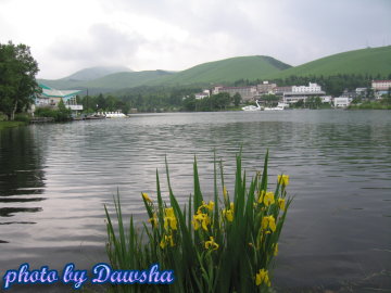 終於看到白樺湖了,那霧茫茫的一片是雨水,