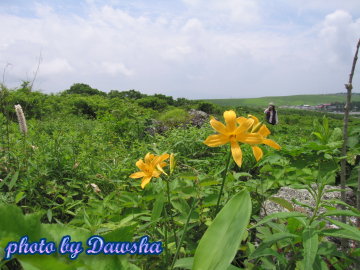 已經變天了,我們由車山高原走回白樺湖的路上,旁邊是美麗的金針花相伴