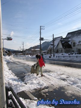 車行一個多小時之後,終於來到山下,我們在安良沢這一站下車,安放我們的行李。當我們將行李搬進民宿,發現房間極狹小,設施簡陋,是我們沿途住過最小的房間。