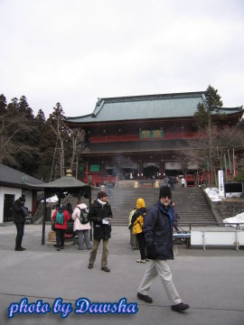 (走在表參道上的洋人與輪王寺本堂(三佛堂)