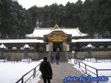 東照宮的鳥居,由鳥居可以看到後面的陽明門