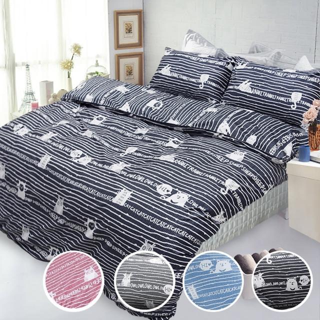 床包組買一送一【FITNESS】精梳棉雙人四件式被套床包組- 萌玩樂園(藍色 粉色 黑色 灰色四色可供選擇)推薦便宜