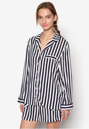【勸敗】zalora taiwan購物網Striped Shirt and Shorts Pyjama Set, 服esprit 品牌飾, 服飾