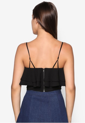 TOPSHOP 的雙荷葉層次短版細肩帶,採雙層荷葉飾設計,配以鏤空細zalora鞋心得節雙細肩帶,設計簡約且性感俏麗。 - 聚酯纖維- 方領- 無袖- 可調整肩帶- 後拉鍊設計- 標準裁剪- 無內襯