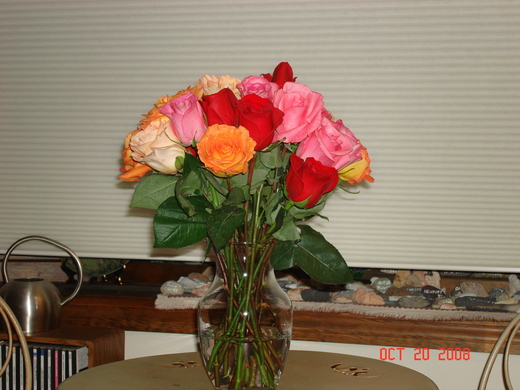我的天啊!竟是兩打玫瑰花,加上一個玻璃花瓶!
