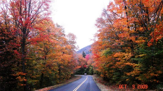 因此,這兒的秋色不是出現在一、兩棵樹,不是一樹林或兩樹林,而是滿山遍野地環繞四周,不管在哪一個角落,眼底都不時擠滿亮麗的色彩,讓醉人的視覺饗宴無窮遠延伸。尤其 NH 那一山又一山連綿彩虹般的秋色,實在無法以言語形容那秋的華麗,只能讚嘆造物者的神奇!