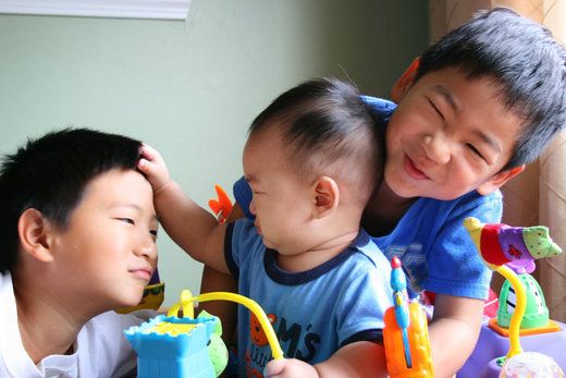 七歲的二哥阿磊最好玩了,都會幫我編故事,常常在我要回家時說:「妳不是說要留下來過夜嗎?」說得好像我真的答應過他卻在食言耍賴一般。九歲半的大哥凜凜則比較實在,訴諸溫情,說:「如果妳留來住,我早上煎蛋給妳吃。」