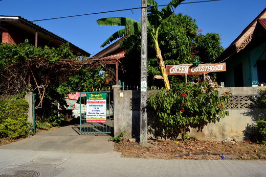 越過了不按牌理的奇怪星期五,經過次日八小時的車程之後,星期六的傍晚,我安全地抵達美索鎮,也順利找到了一個完全符合我需求的 Green Guesthouse 。是個乾淨、經濟、實惠的民宿。因為停留的時間較長,我幸運地住到有自己衛浴的單人房間,還有無線網路。花園有一點荒蕪的味道,有一隻貓,偶爾會出現找我撒嬌。這裏的氣候很舒適,早晚溫差稍大,白天的太陽蠻熱,但不容易流汗,一切都剛剛好,曼谷可要熱多了。