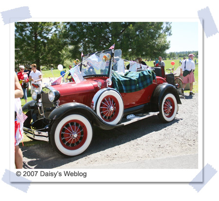 在 Black Butte 的這幾天雖然也出去走過,卻一直到今天才知道原來在這裡度假的人居然這麼多。帶著小朋友的父母和同行的狗兒排排站,隊伍之長,讓人咋舌。第一次參加遊行的我也快步地跑到隊伍的前端,拿著攝影機對著手持氣球、美國國旗或標語的人群拍著,希望能捕捉等一下通過的在隊伍中行進的女兒的特寫畫面。不料攝影技術欠佳的我還是出了紕漏,站在路邊拍了半天卻連個家人的影子都沒看到,還搞得自己差點丟掉。