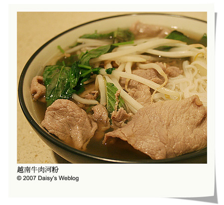 聶先生和我都很喜歡吃越南河粉。天冷的時候,每個月大概都要光顧附近的越南河粉店一、二次。聶先生常鼓勵我試著在家自己作看看,只是我一直沒勇氣熬一鍋可能完成後沒人要喝的湯。前幾天在可愛的 Alice 的部落格上看到她作的【越南河粉】,讓我看了食指大動外,也再次動了想嘗試一下的念頭。今天上午出門將材料都買齊後,下午在家閉門熬湯,晚上聶先生回來看到熱騰騰的越南牛肉河粉還感動不已呢!