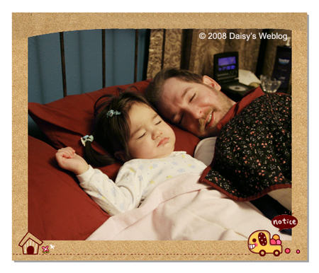 起初大寶很反對,認為我這樣作會把女兒寵壞了,讓她以後習慣和爸媽睡一起,之後再想把她送出去就難了。我反駁說短短十分鐘的親子時間讓我們感情更親密,之後孩子也總是開開心心地上自己的床睡了,所以無傷大雅。這些日子來證明事實如此,大寶聽了也啞口無言。