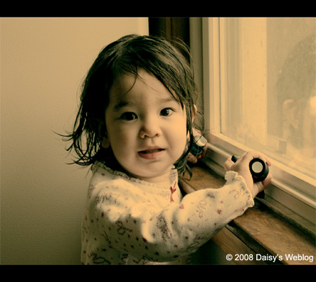 這些日子以來,加恩繼續捍衛著她的『獨立宣言』,拒絕讓爸比和媽咪餵她吃飯,也會跟媽咪要求要穿熊熊的褲子。但是讓我感到無所適從的是她的脾氣。過去加恩一直都是個很快樂,很乖巧的孩子。最近卻常因為得不到東西而生氣,有時莫名其妙地就哭鬧起來,甚至對我們「動粗」。爸爸和我很難過,也不禁懷疑:「是誰偷了我們的小天使 ?」