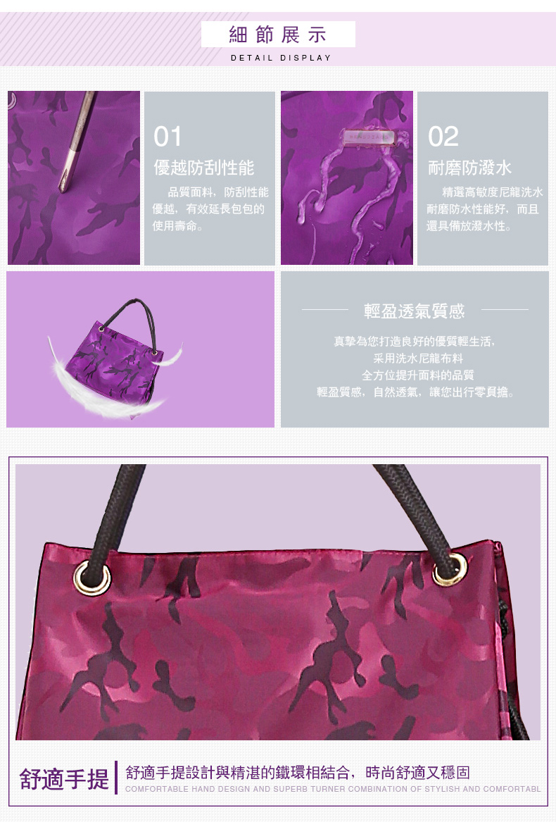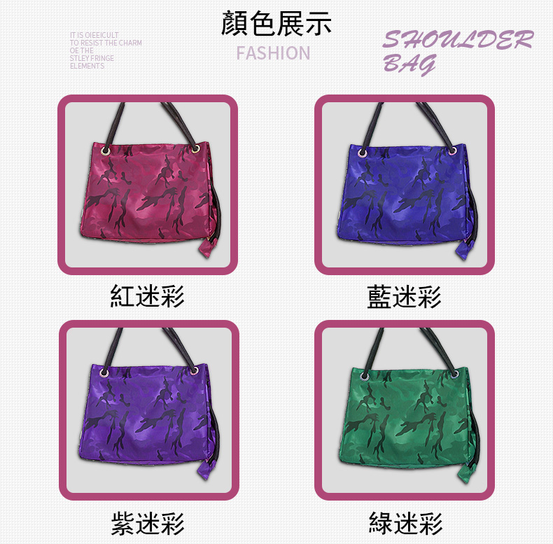 商品訊息簡述不沾鍋鍋鏟哪種好用: 輕時尚迷彩3way包,由牛津布料製成,耐磨防刮不髒污易清洗,透過提繩變化可以手提、側背及斜背三種背法