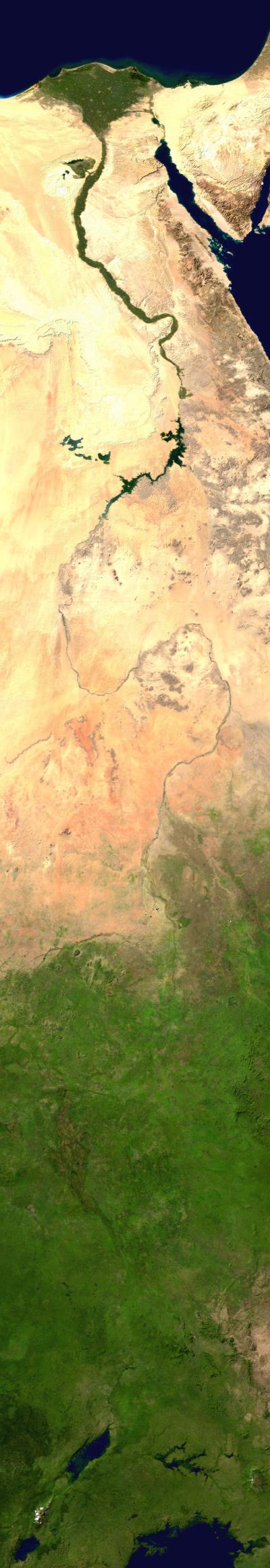 尼羅河有兩條源頭,一條發源於烏干達的維多利亞湖,稱為「白尼羅河」;一條發源於衣索匹亞,稱為「藍尼羅河」。兩條在蘇丹交匯,流入埃及,全長有