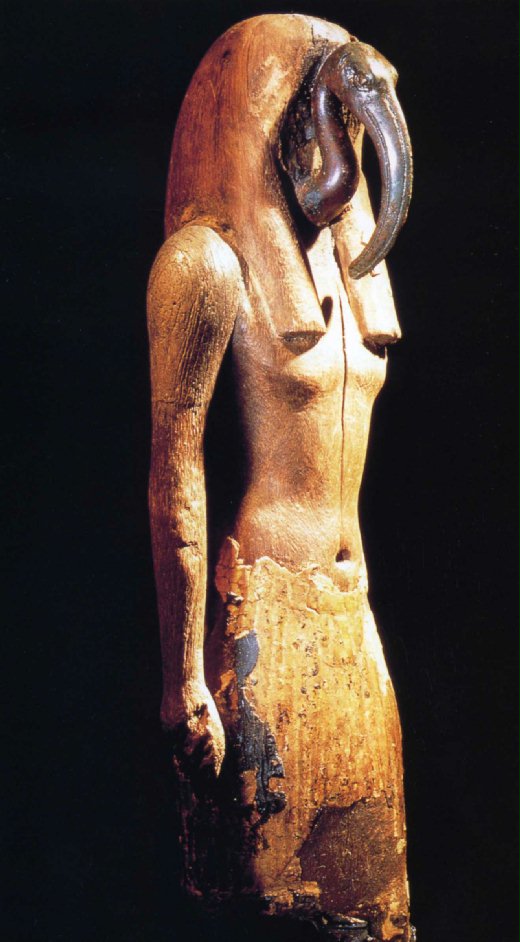 牛神哈托爾以女性形象出現,她是荷魯斯的妻子,協助丈夫治理國家。形象特徵為頭頂有兩隻牛角的形狀,另外一種形象則是以女性臉龐出現,說明了女性獨有的溫柔氣質,也和伊西斯一樣,象徵豐饒與生育。許多時候,哈托爾的牛角上也有一圈日輪,代表與太陽神的結合。埃及許多神殿都單獨供奉哈托爾,是信仰度極高的神祇。